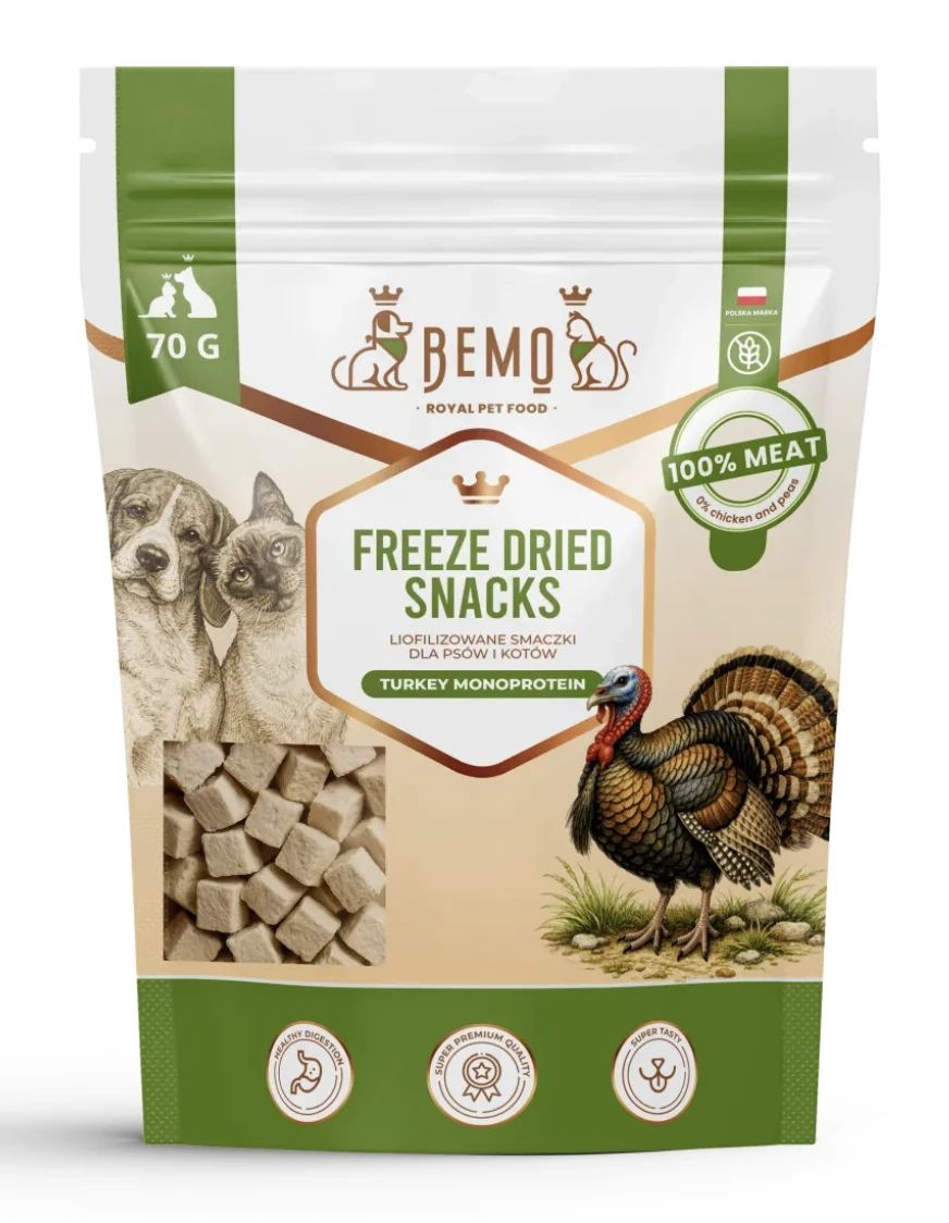 Bemo Freeze Dried Meat Snacks – 100% Indyka | Chrupiąca Uczta dla Twojego Kota