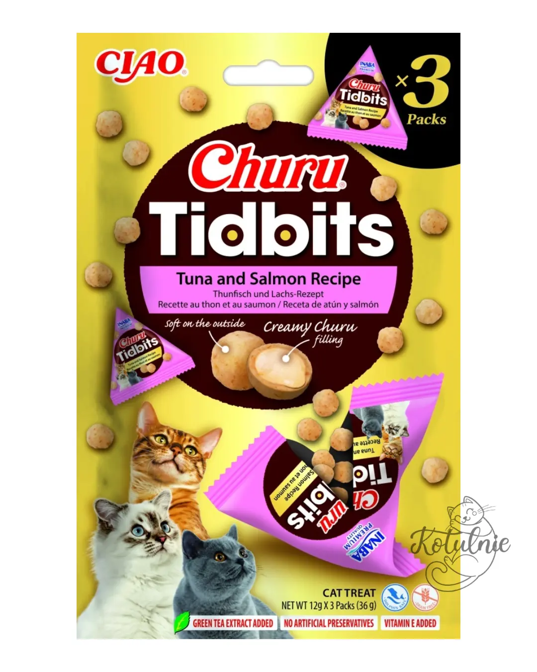 Inaba Churu TIDBITS TUNA & SALMON 3×12 g – przysmak dla kota z tuńczykiem i łososiem